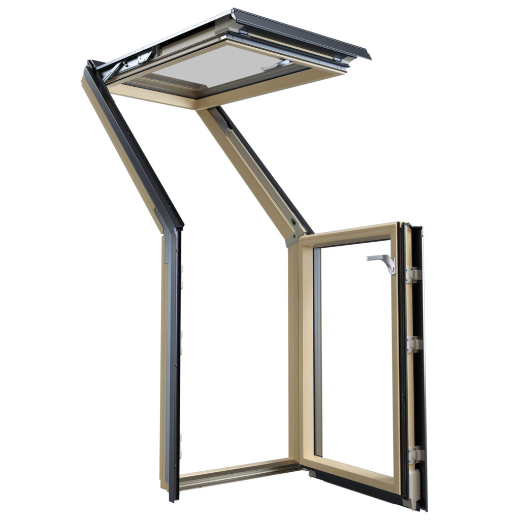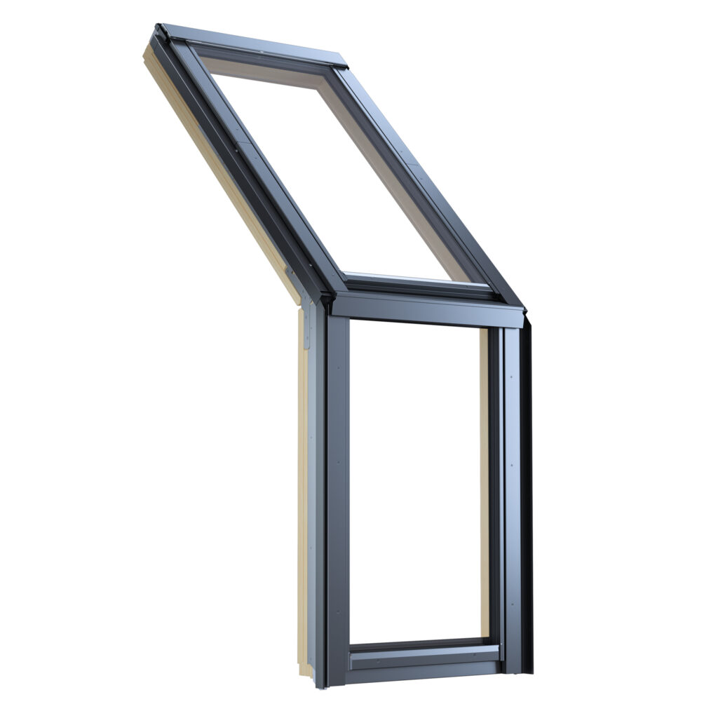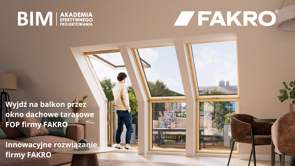 - Funkcjonalne wyjście na taras lub balkon – połączenie dwóch okien FAKRO (górnego FOP i dolnego FOR/FOL/FOX).