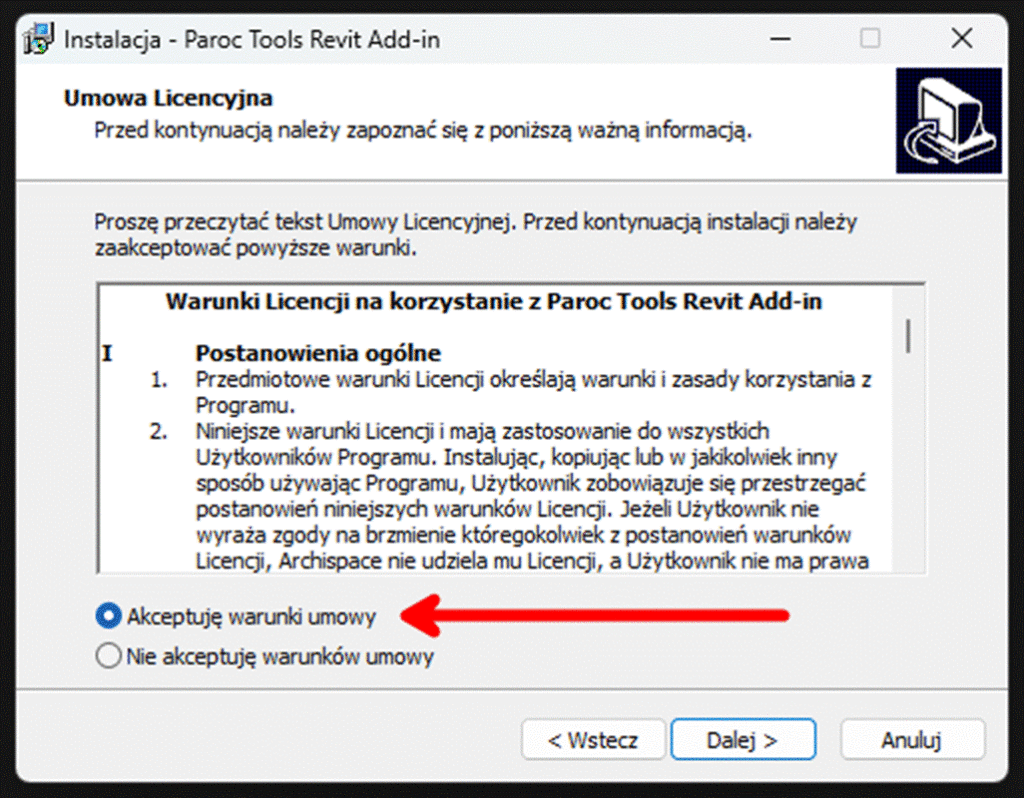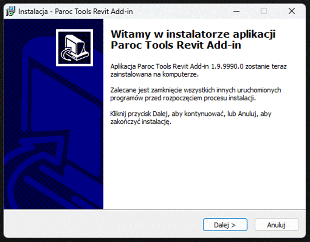 Po uruchomieniu instalatora przechodzimy przez kolejne kroki: