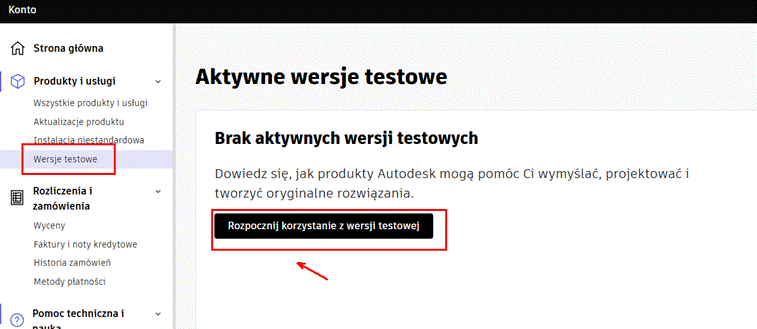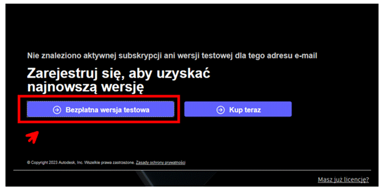 Aby korzystać z wersji testowej należy założyć bezpłatne konto Autodesk, a następnie: