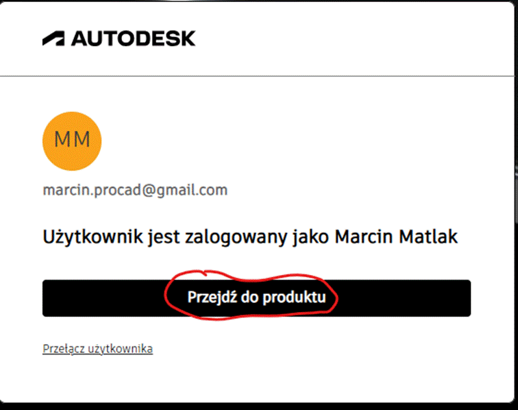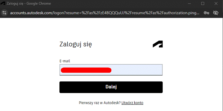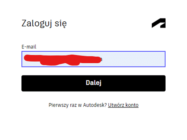 Jeżeli mamy już konto Autodesk, to się logujemy, jeżeli nie, to tworzymy konto: