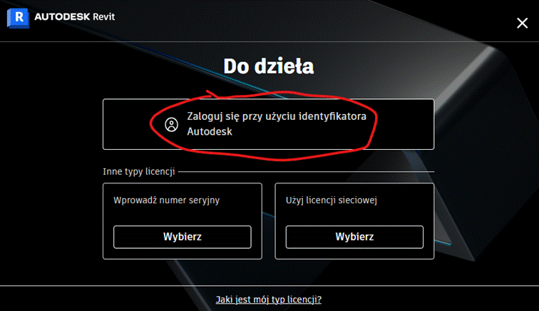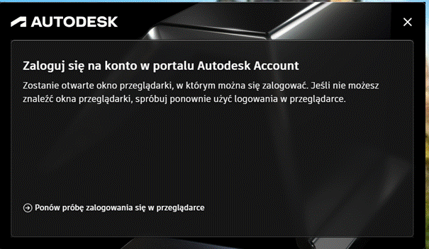 Po aktywacji uruchamiamy program Revit i powinno otworzyć się okno logowania razem z kartą przeglądarki: