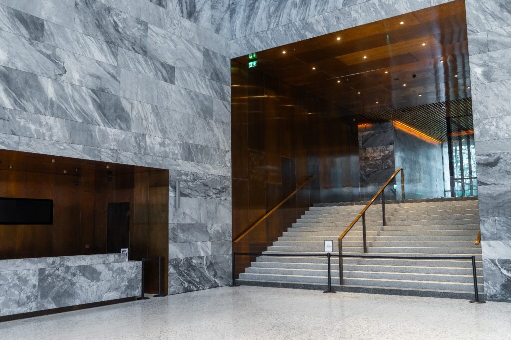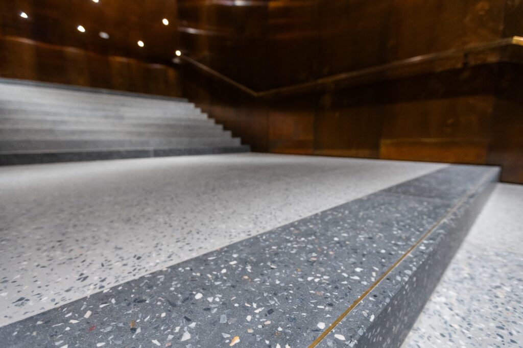 Nowoczesne okładziny z betonu szlachetnego o wysokiej odporności, przeznaczone do obiektów biurowych, publicznych i komercyjnych.